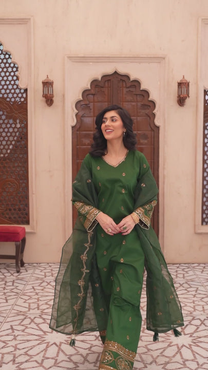Malika Jahan - Royal Green Attire | 3-PIECE STITCHED FULL SLEEVES