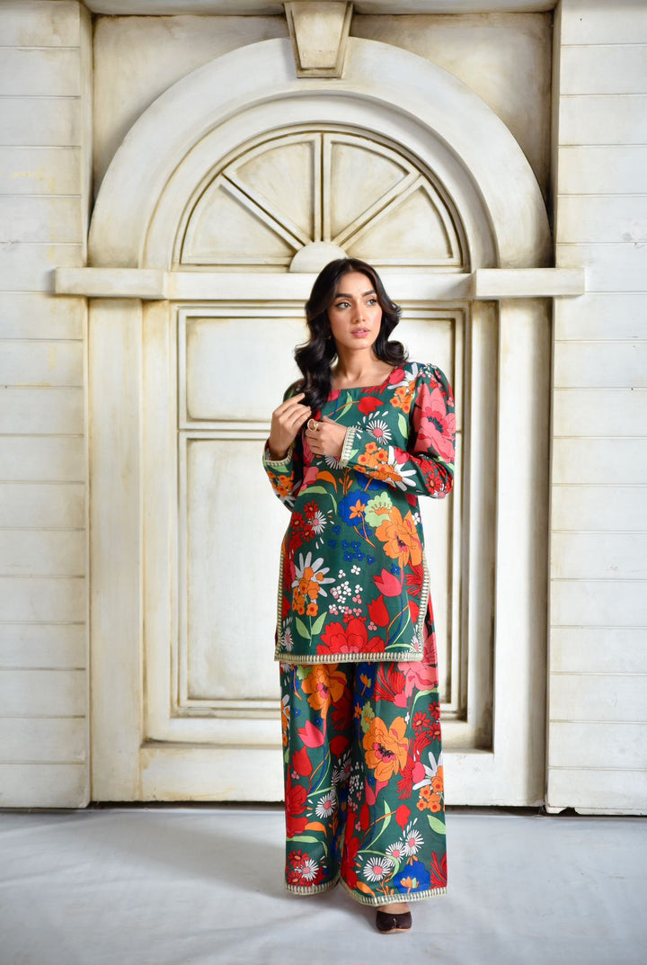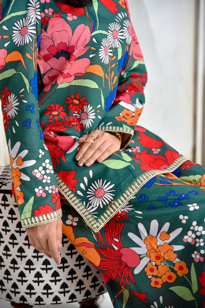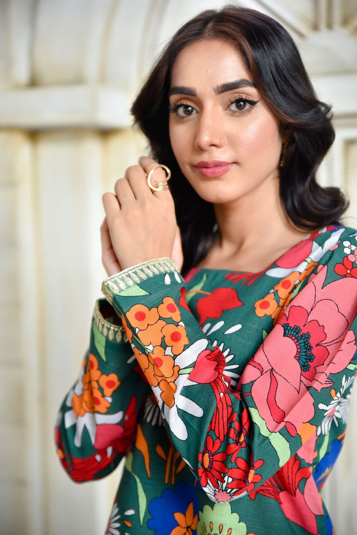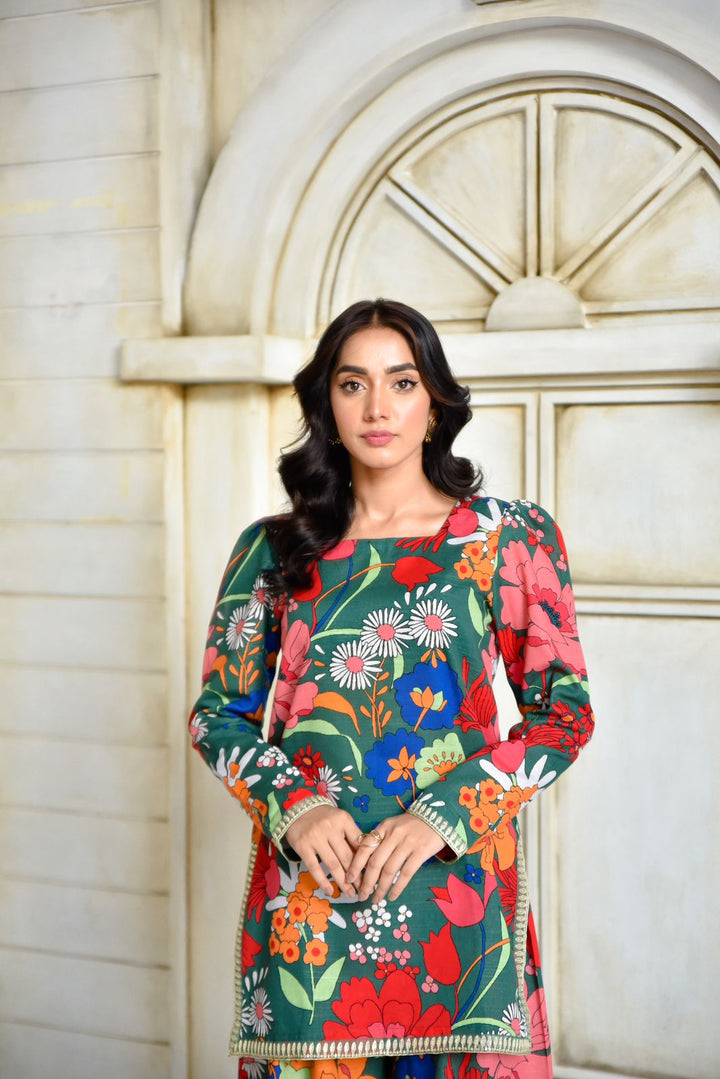 Elevate your style with the Green Glamour Embroidery Khaddar Set, a stunning 2-piece ensemble that embodies elegance and sophistication. This set is crafted from premium khaddar fabric, featuring a rich green base beautifully adorned with intricate embroidery that showcases floral motifs. The artful stitching adds a touch of luxury, making this outfit perfect for special occasions and festive gatherings. The straight-cut kameez pairs seamlessly with tailored trousers, offering a flattering and comfortable fit. Green Glamour is a perfect blend of traditional craftsmanship and contemporary design, ensuring you stand out with grace and poise.